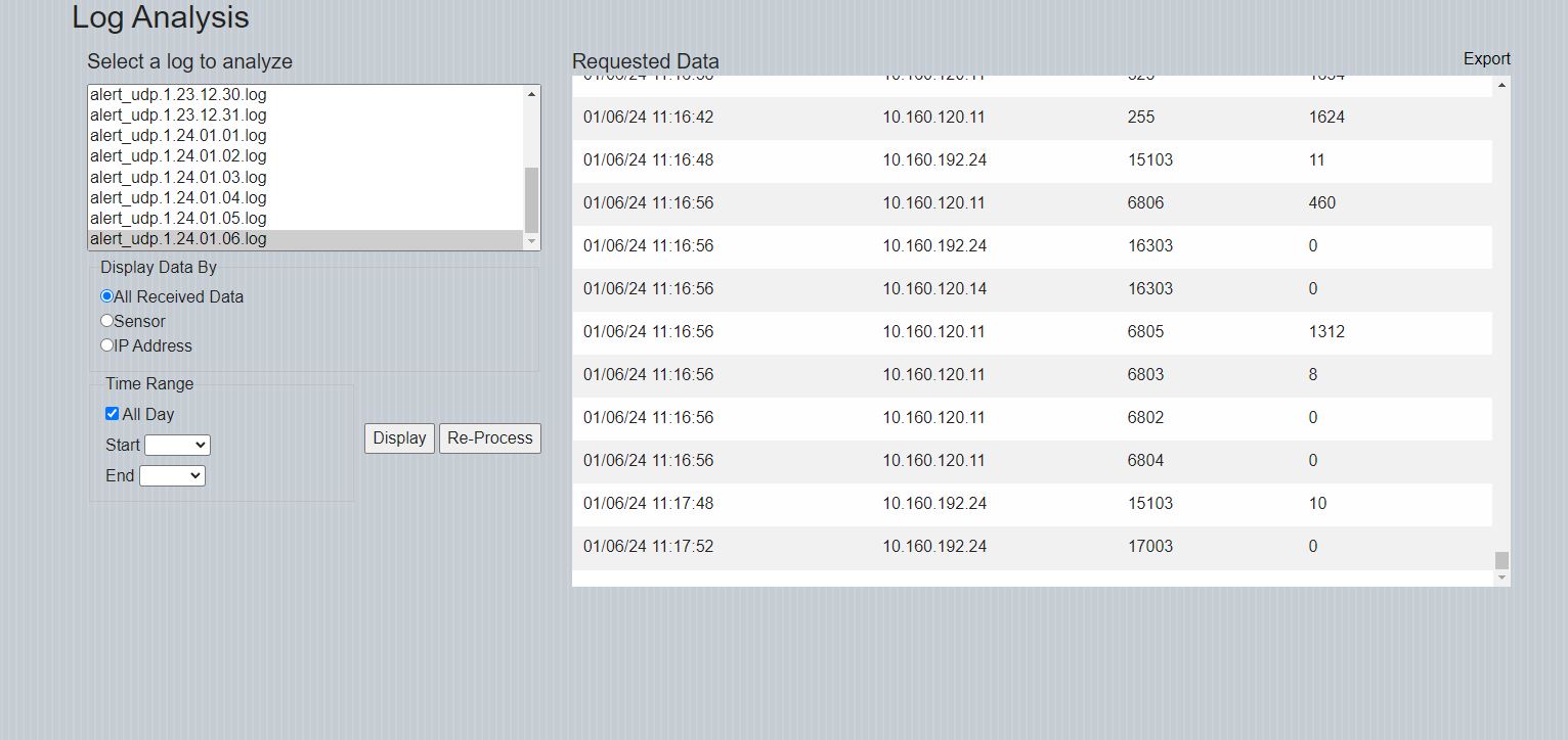Alert Log for data received by UDP packets.