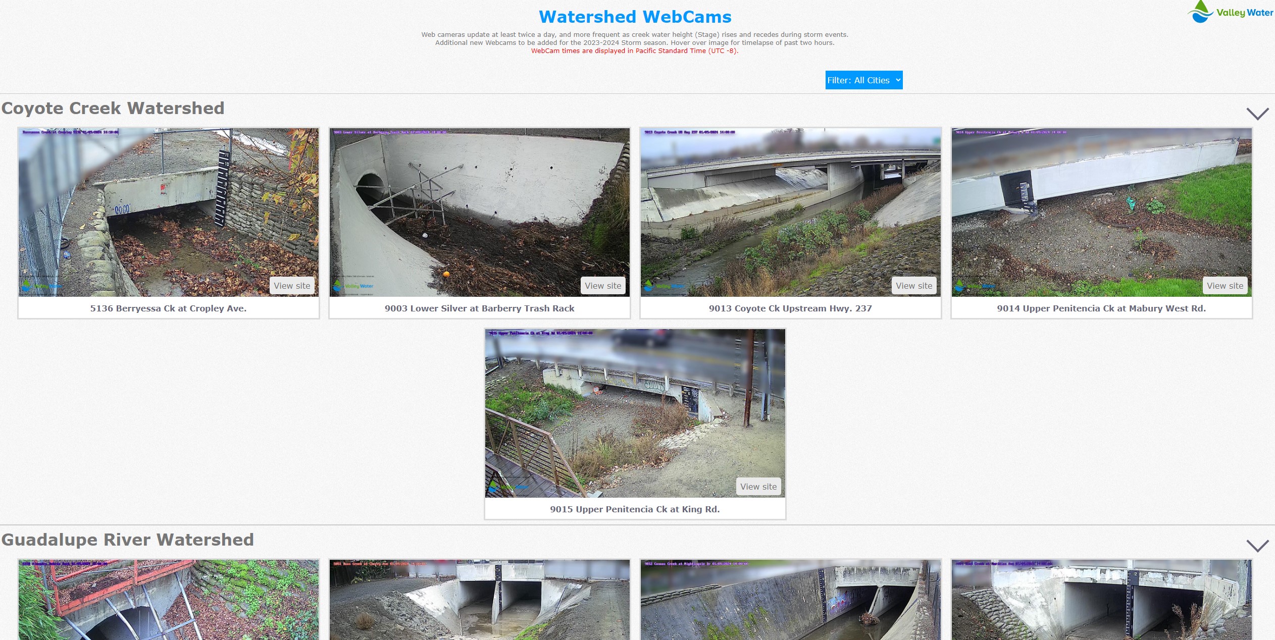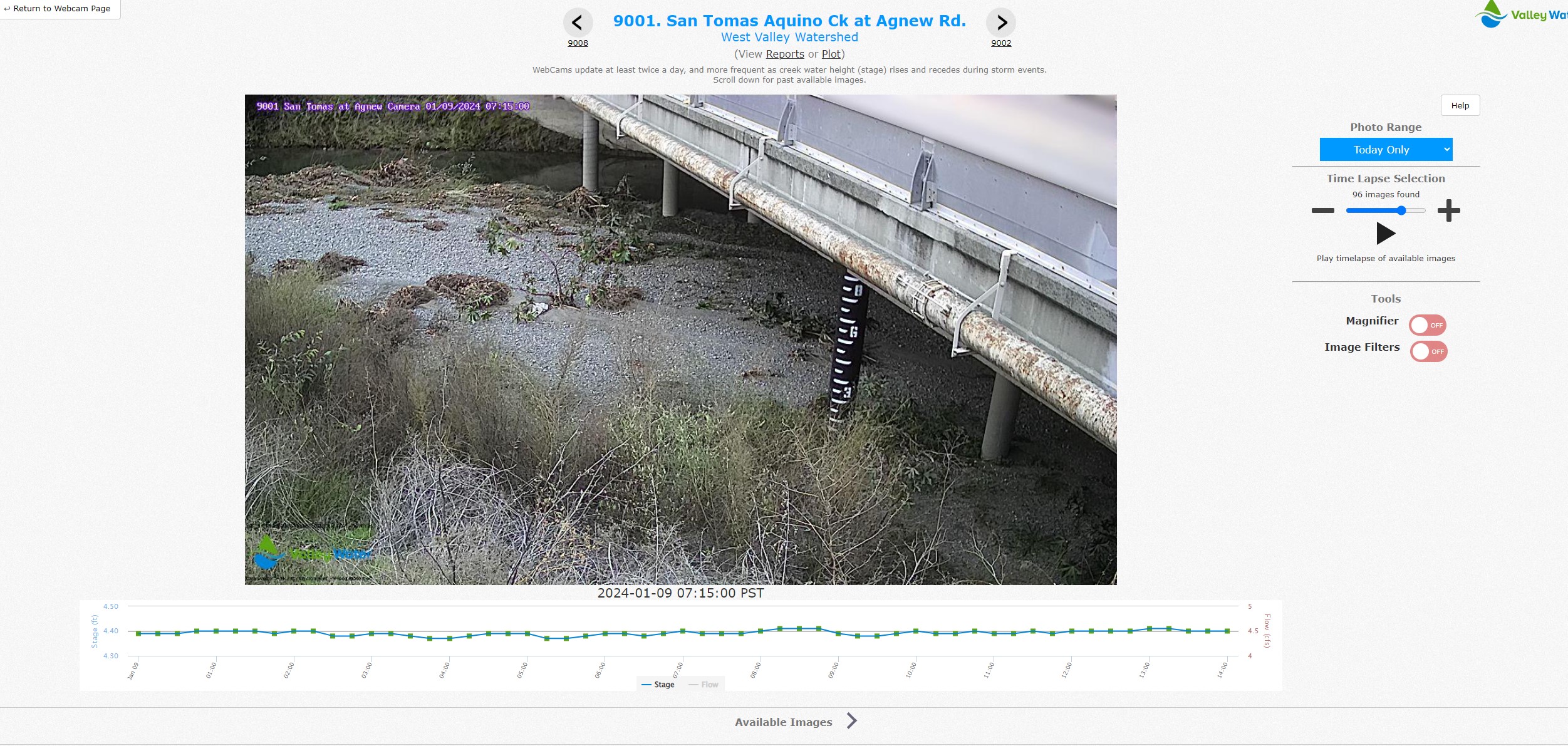 Going directly to the "Web Cam Images" link will bring up a display that groups all web cams by watershed.